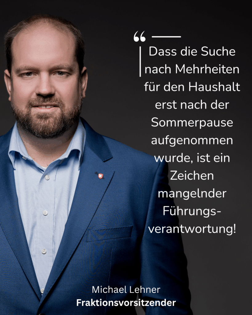 „Dass die Suche nach Mehrheiten für den Haushalt erst nach der Sommerpause aufgenommen wurde, ist ein Zeichen mangelnder Führungsverantwortung“, so CSU-Fraktionsvorsitzender Michael Lehner. „Eigentlich müssten solche Gespräche im Frühjahr beginnen. Wertvolle Monate sind verloren gegangen, die man produktiv hätte nutzen können.“