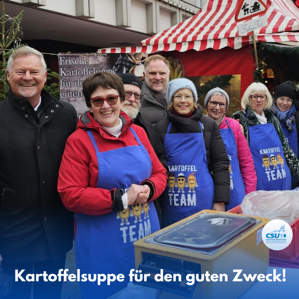 Bernadette Dechant und viele CSU-Stadträte verkaufen auch dieses Jahr wieder jeden Adventssamstag ab 11 Uhr ihre leckere Kartoffelsuppe am Stand auf dem Neupfarrplatz in Regensburg.